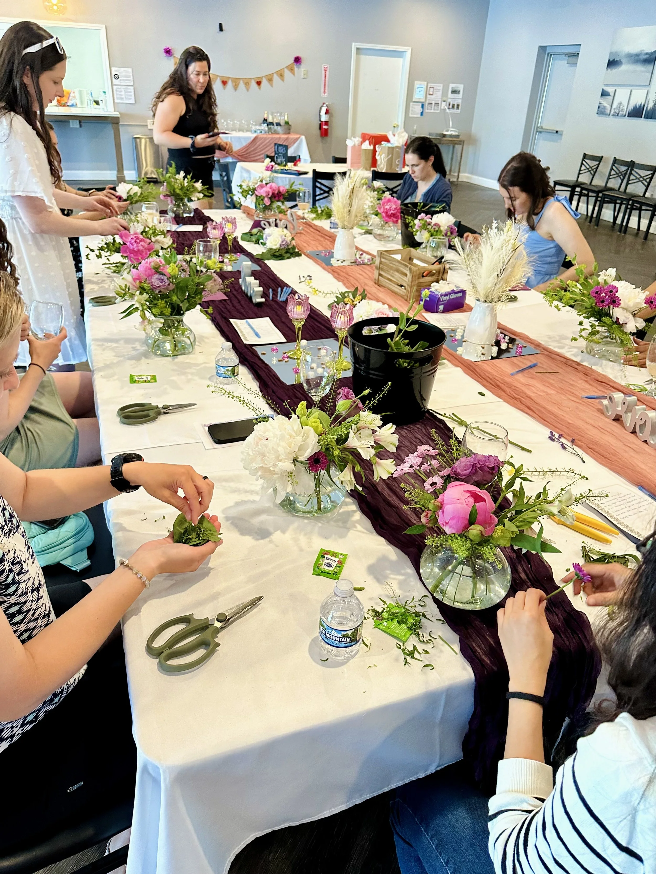 Want a fun, creative gathering where you provide your own food and beverages, and we bring all the gorgeous flowers, design learning, and fun—without any of the stress?